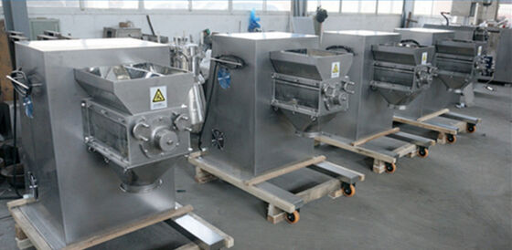 Lo spheronizer del extruder& pricipalmente applicato nel processo di produzione delle palline, facendo uso della barretta rotatoria della vite all'espulsione il materiale bagnato dallo schermo spheral, le strisce espelse cade nel piatto del disco dello spheronizer, poi spoglia il disaccordo ed il rotolo sul piatto rotatorio del disco con forza centrifuga del piatto rotatorio ad alta velocità del disco ed infine si trasforma in in palline rotonde e solide.