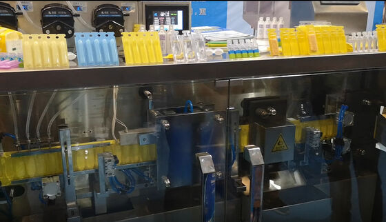 2. La macchina può finire automaticamente il seguente posto di lavoro 6 attraverso il programmatore, il rilascio dello strato del rullo, la formazione di PVC/PE, riempiente, stampa il numero di lotto, il raccolto posteriore, fendente