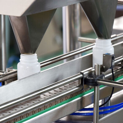 Il contatore multicanale può contare ed imballare le particelle solide quali le pillole, le compresse, le capsule (capsule dure trasparenti o opache, capsule molli). È adatto a compresse, capsule, le pillole della dimensione di 20mm - di 3mm. Questa macchina è ampiamente usata nelle istituzioni di ricerca scientifica, ospedali, impianti farmaceutici, laboratori e fabbriche dei prodotti di sanità, in conformità con i requisiti di GMP. Il dispositivo del tappo della bottiglia sulla ferrovia allattare con il biberon del meccanismo di trasporto della bottiglia bloccherà la bottiglia trasportata dal dispositivo e dalla fermata superiori alla posizione imbottigliante, aspettante il riempimento. La medicina fornisce la camera della medicina con la vibrazione del cartone ondulato d'alimentazione ed il sensore fotoelettrico di conteggio è installato sulla camera della medicina. La medicina che cade nella camera della medicina è contata quantitativamente dal sensore di conteggio fotoelettrico ed allora caricato nel imbottigli la posizione imbottigliante.