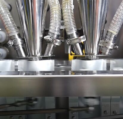 1.Rivolta del film 2.Formazione del sacchetto 3.Guida del film 4.Fotocellula 5.Sigillamento inferiore 6.Sigillamento verticale 7.Seconda sigillatura verticale 8.Stagno di lacrimazione 9.Double Cutting 10.Pouch Catching 11.Pouch Catching 12.Pouch Pulling 13.Apertura della borsa 14.Riempimento I 15.Riempimento II 16.Sello superiore 17.Prodotto finito 18.Spazio